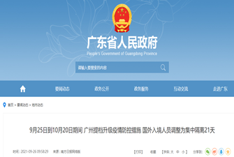 廣州市新型冠狀病毒肺炎疫情防控指揮部發布《廣州市新型冠狀病毒肺炎疫情防控指揮部關于第130屆中國進出口商品交易會疫情防控實施提檔升級措施的通告(第26號)》,該通告明確,第130屆廣交會將于10月在廣州舉行,為確保本屆廣交會順利舉辦,決定從即日起至10月20日實施新冠肺炎疫情防控提檔升級措施。